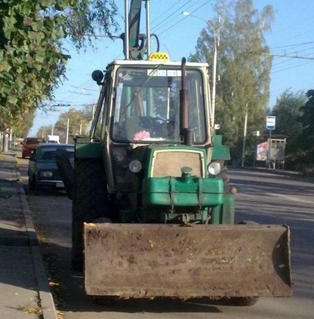 Трактор на дороге.