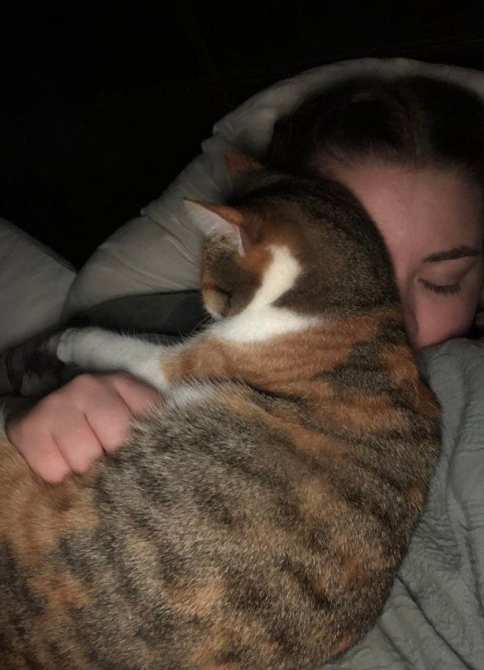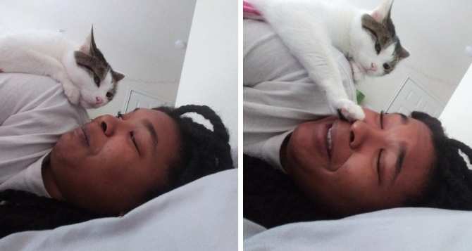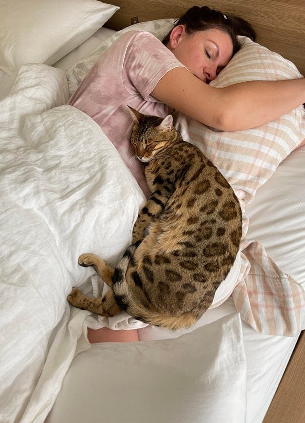 Домашние питомцы любят спать в удобных для них местах, а удобнее всего им рядом с человеком либо прямо на человеке!Уютно ли при всем этом человеку - не принципиально!