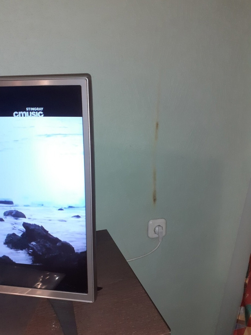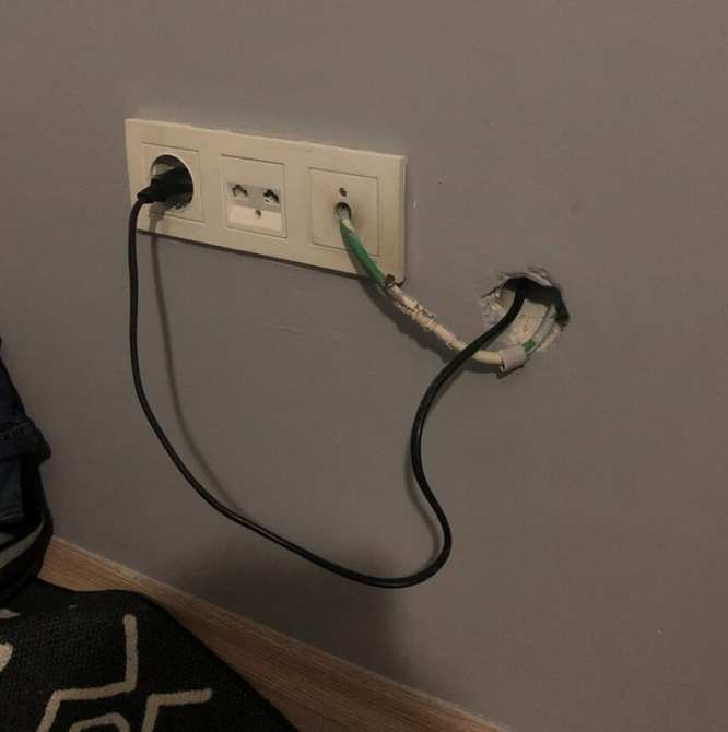 Есть спрятанный кабель-канал в стенке из гипсокартона, но не все детали совсем продуманы