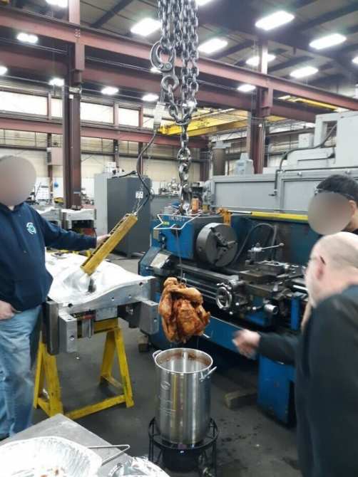 27. "Подарил отцу фритюрницу, он прислал фото, как готовит на работе индейку с помощью 30-тонного подъемника"