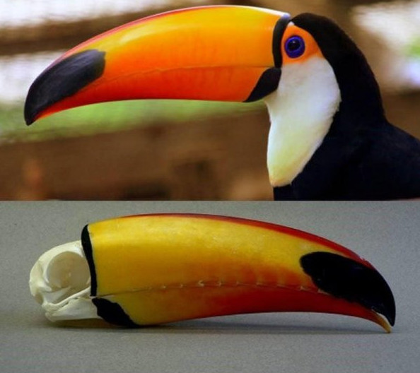 Клюв тукана в сопоставлении с его черепом