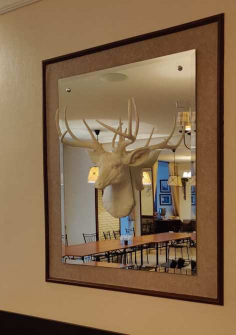 Что можно увидеть в зеркале, в центре которого торчит олень?