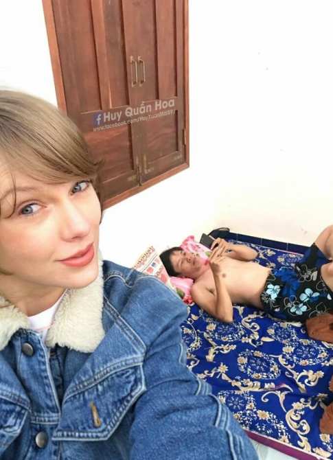 Этот вьетнамский живописец по имени Хай Сюан Май освоил редактирование фото и теперь может разговаривать с хоть какой знаменитостью. Он создает глуповатые и забавные фото в фотошопе. Хай постоянно носит похожую одежду - без рубахи, шорты с цветочным рисунком и шлепанцы. Эти вещи стали его подписью. Хай удается так отлично вписаться в фото, что нередко кажется, что он вправду встретил Тейлор Свифт, Тора либо Стального человека.