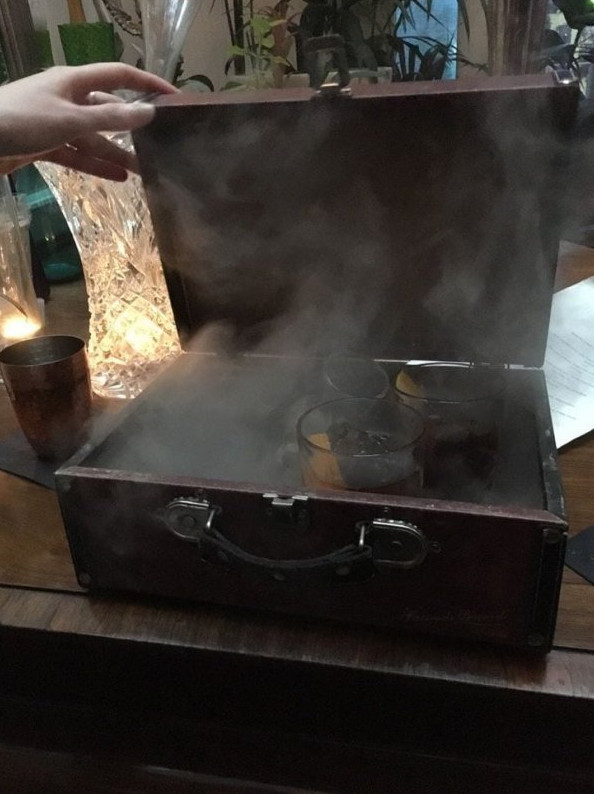 Мы заказали несколько напитков, и их принесли в дымящемся чемодане