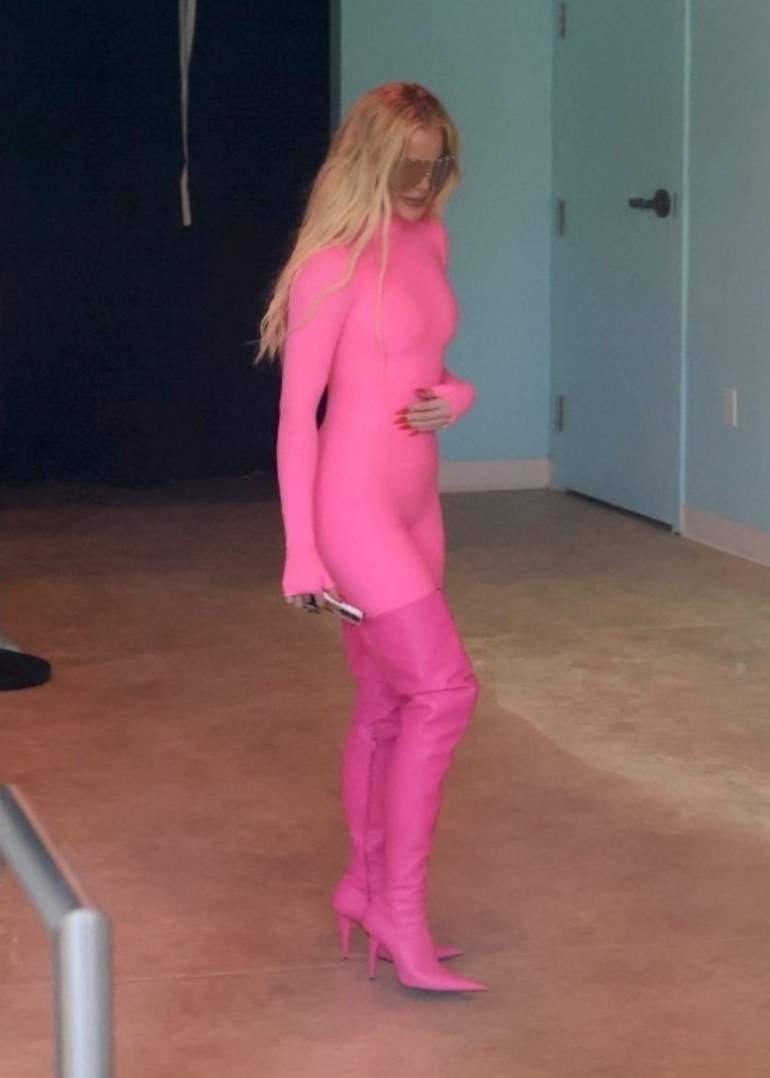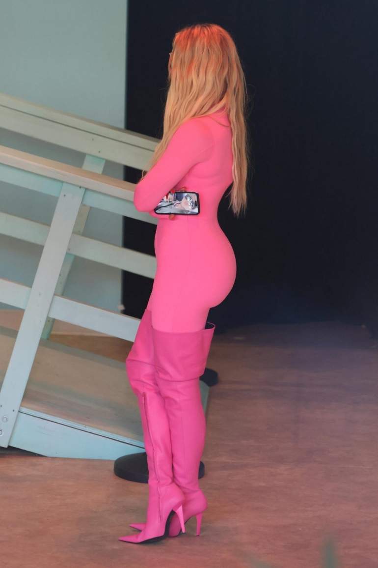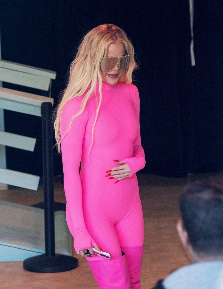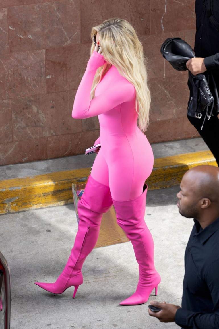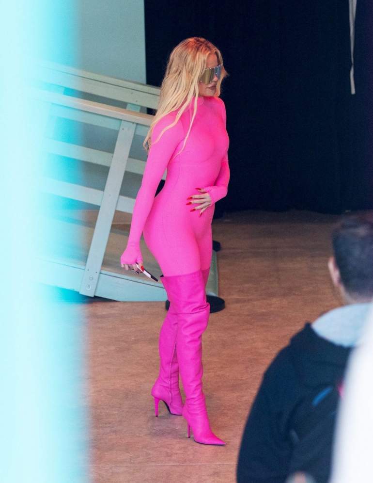 Фото: Хлои Кардашян в облегающем комбинезоне Американская телеведущая, бизнесвумен и предпринимательница Хлои Кардашьян, 38 лет, в обтягивающем розовом комбинезоне на выставке Barbie World x Paul Mitchell.