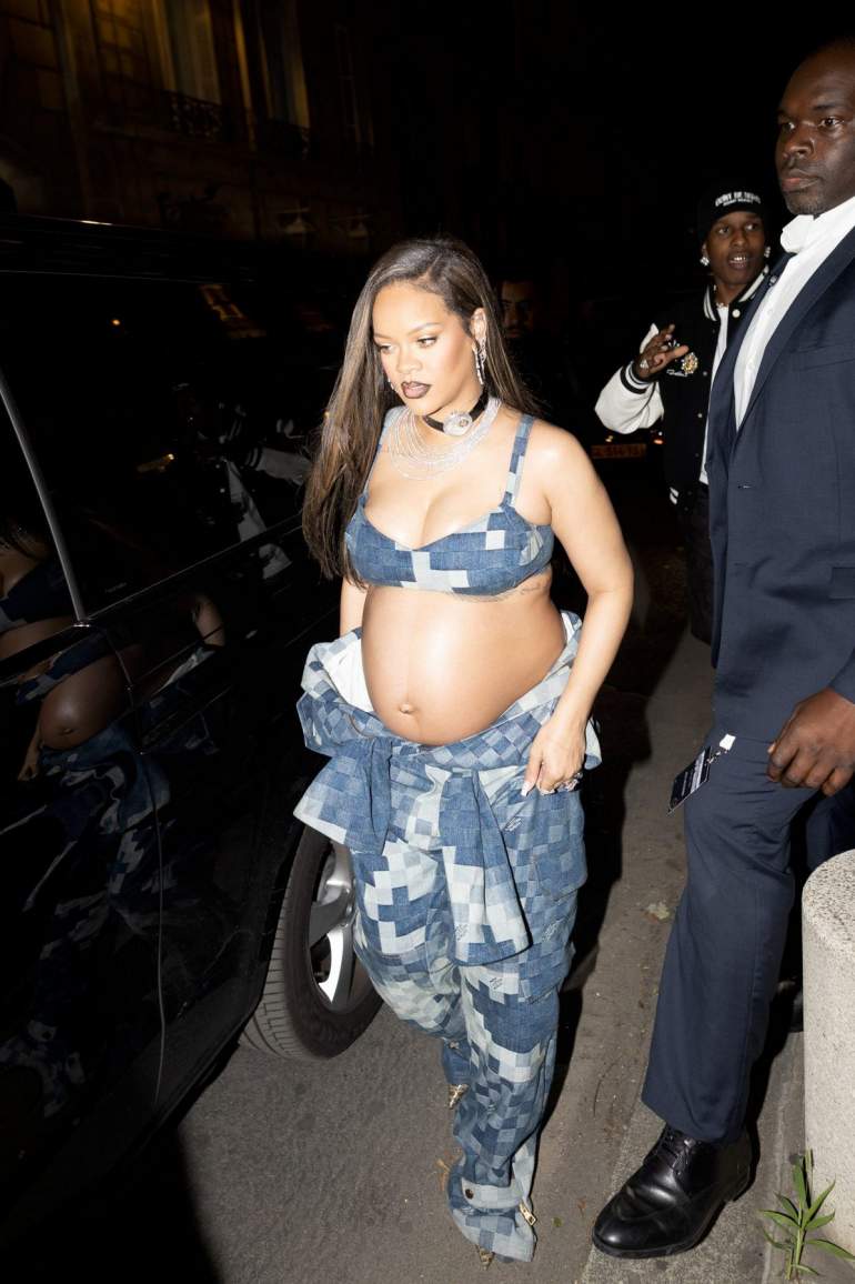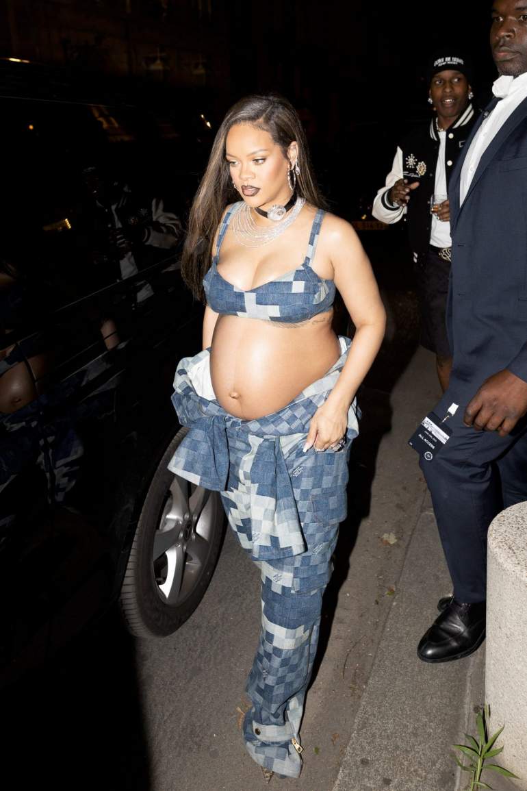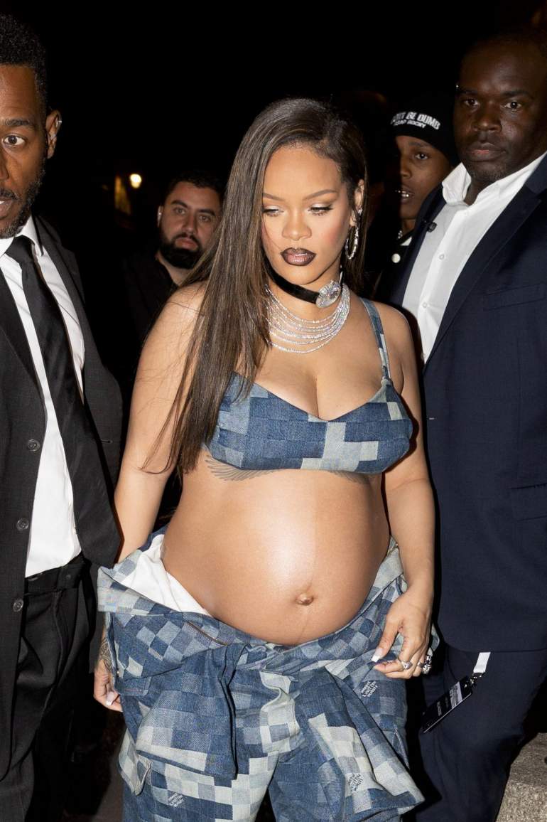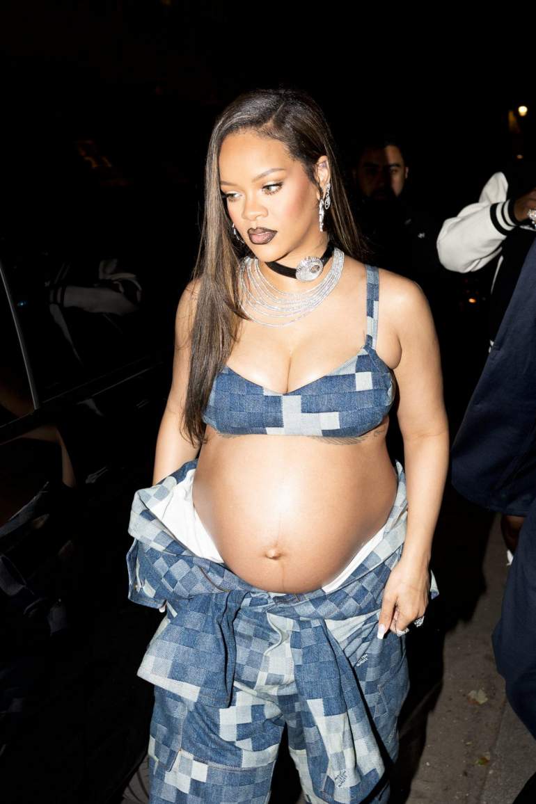 35-летняя барбадосская певица, актриса, музыкальный продюсер, модельер и филантроп Рианна в экстравагантном наряде на показе мужской одежды Louis Vuitton весна/лето 2024 на Неделе моды в Париже.