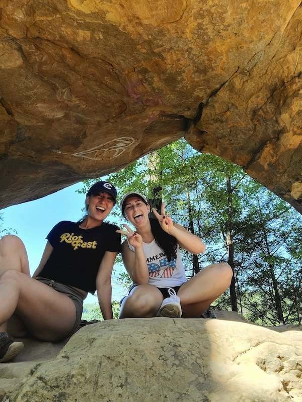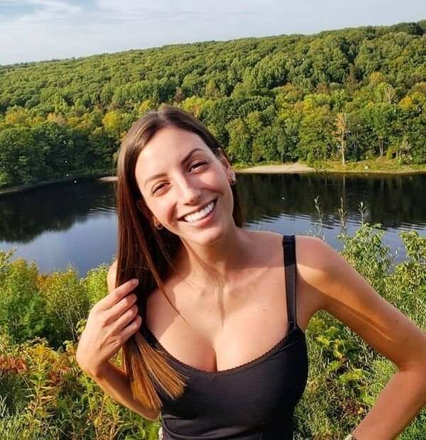 Милая Катя на фоне водопада.