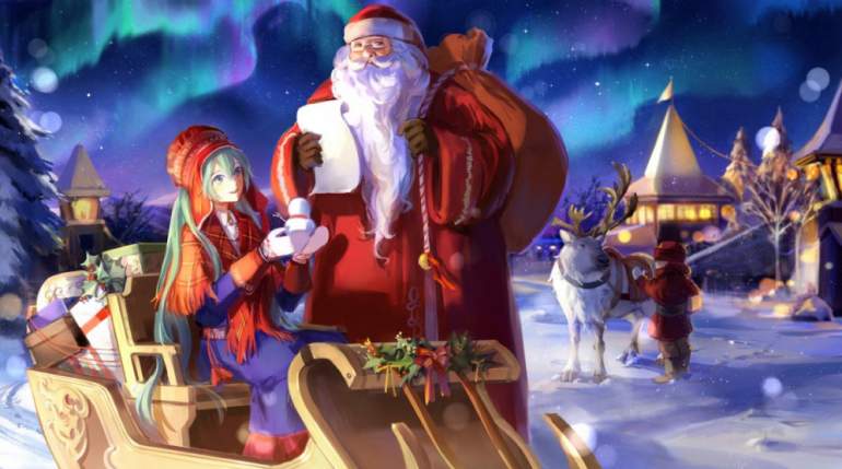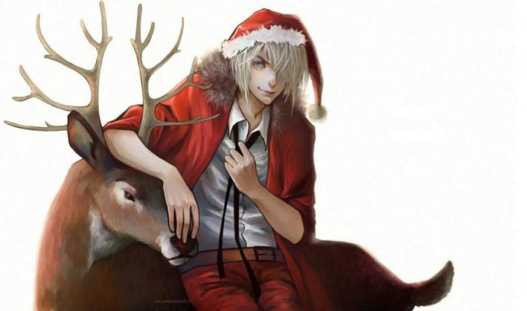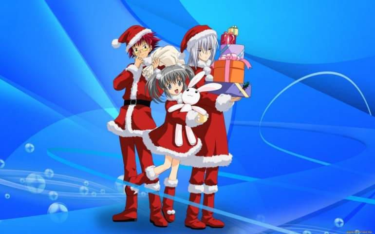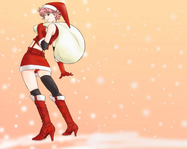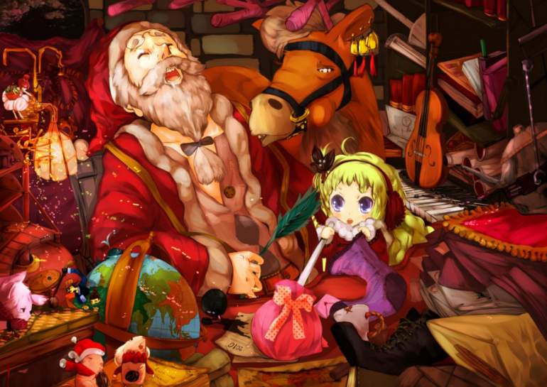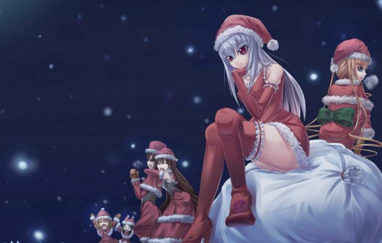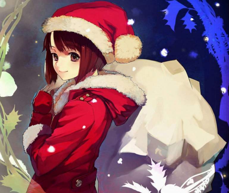 Картинки Аниме девчонка в костюмчике Деда Мороза