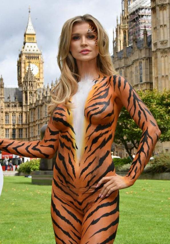 Американская фотомодель и актриса польского происхождения Джоанна Крупа выступила за спасение тигров, устроив в Лондоне фотосессию в обнаженном виде. Тело 38-летней актрисы было покрыто тигровой краской, а в руках она держала плакат с надписью "Немедленно запретите цирки с дикими животными".