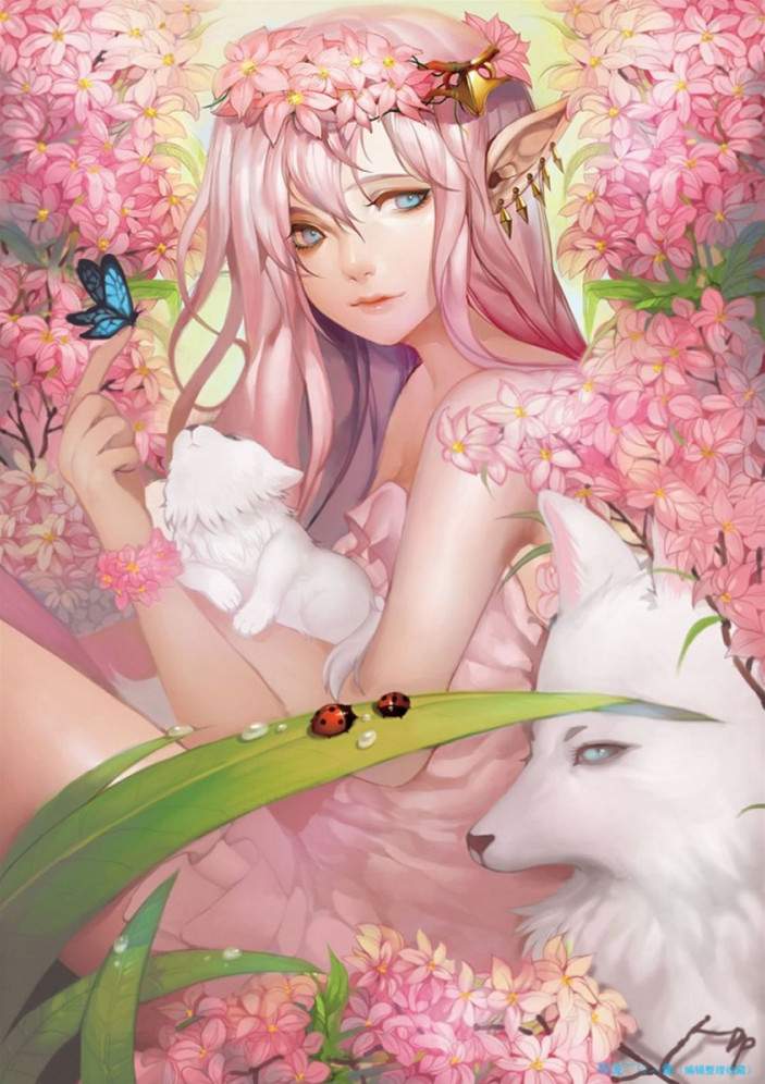 Эльфийка с розовыми волосами