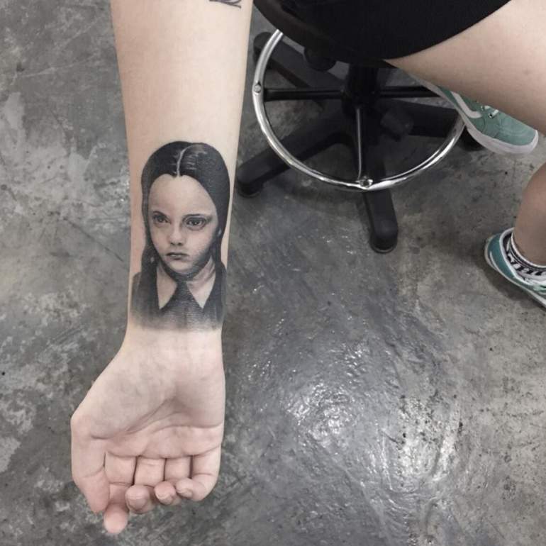 Венсдей Аддамс тату