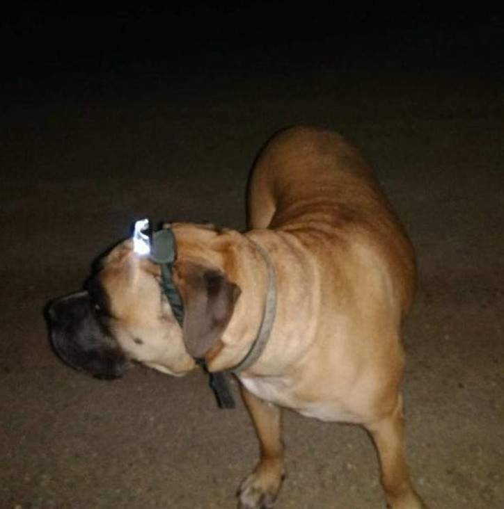 Этот мастиф боялся темноты, но фонарик, прикрепленный к его голове, решил эту проблему