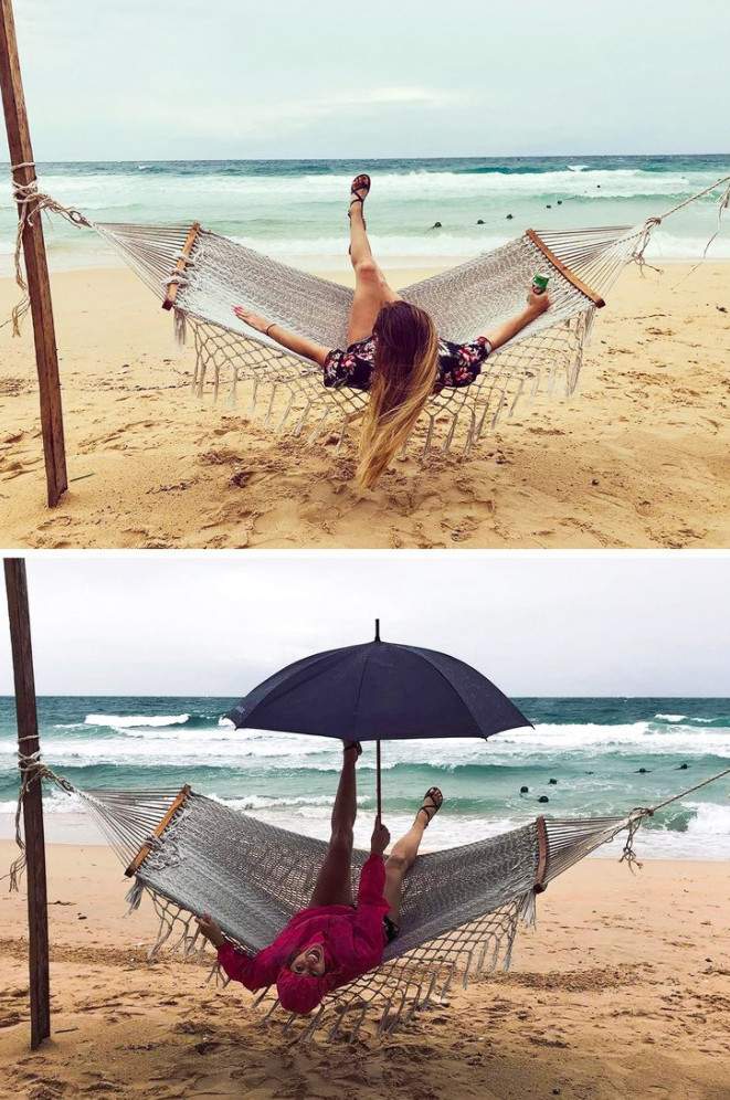 Сначала вы наслаждаетесь лежанием в гамаке, а через 5 минут оказываетесь под защитой от урагана