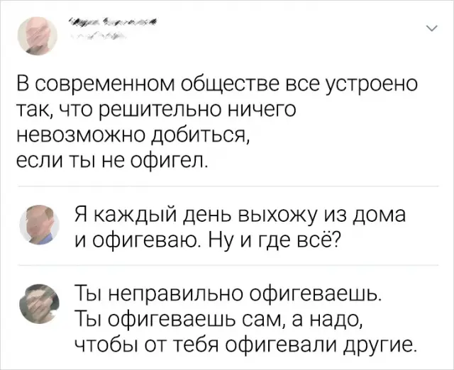 Коллекция забавных комментариев 19.08.2023 Приколы 19-08-2023, 14:55 143 Смешные комментария в картинках от мамы и сына, от бухого мужа и странной любовницы, которая хочет сыра посреди ночи.