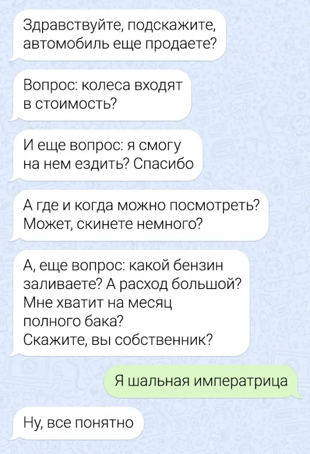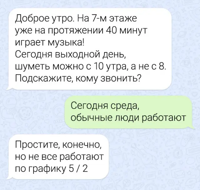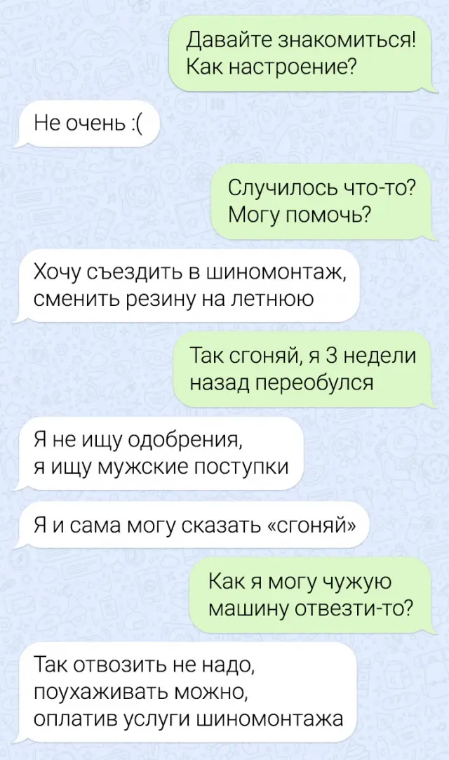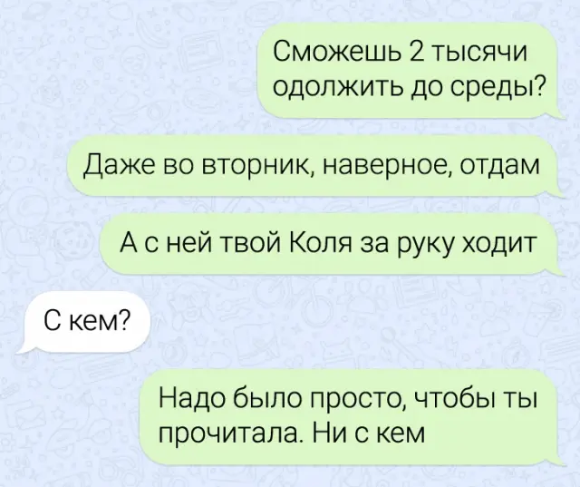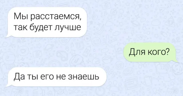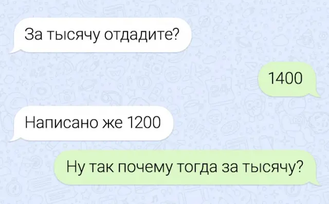 Коллекция забавных переписок 21.08.2023 Приколы 21-08-2023, 10:39 145 Смешные переписки от людей, как парень пишет девушке любовное послание и мужчина не может найти номер квартиры своей любовницы.