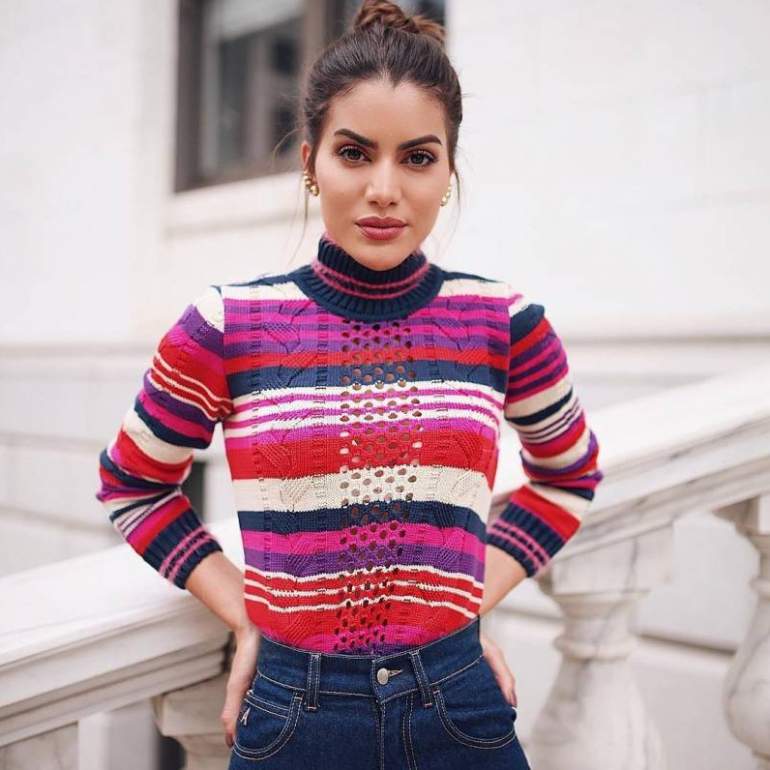 Девушка красавица в полосатой кофте
