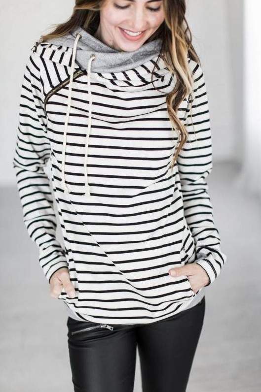 Полосатая водолазка с капюшоном