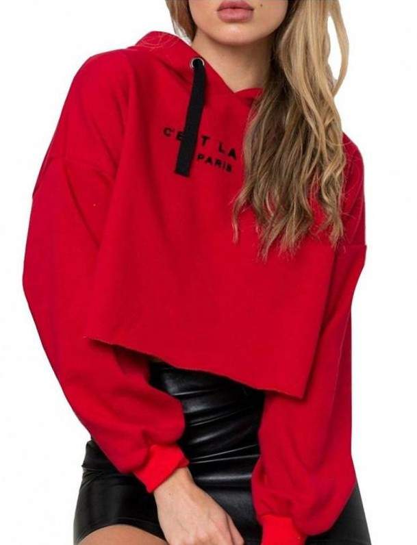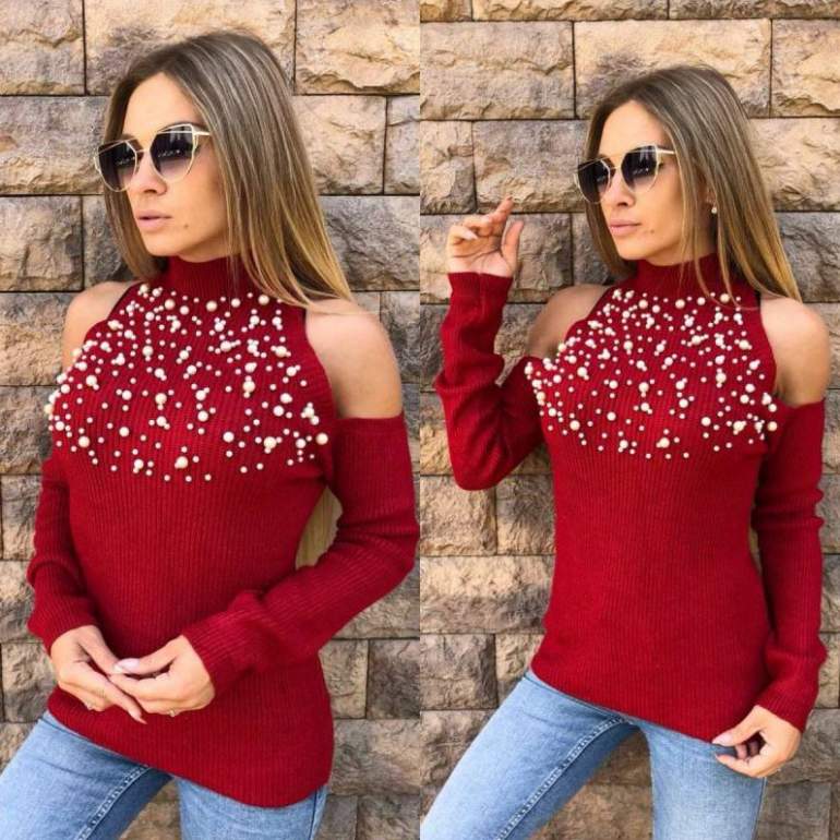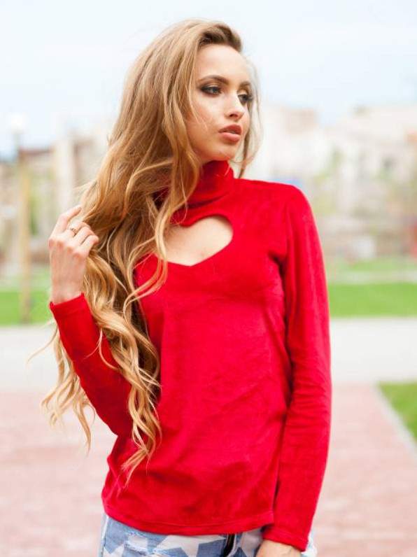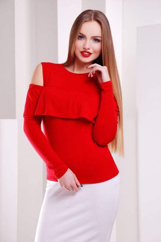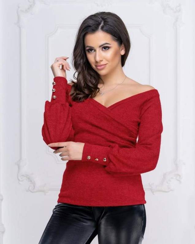 Очень красная кофта с открытыми плечами