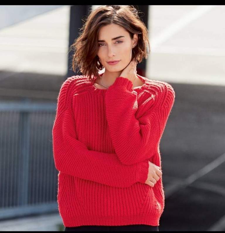 Очень красный вязаный свитер
