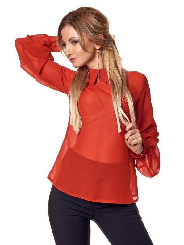 Очень красная прозрачная блузка