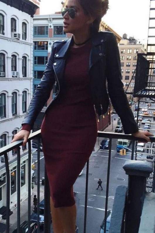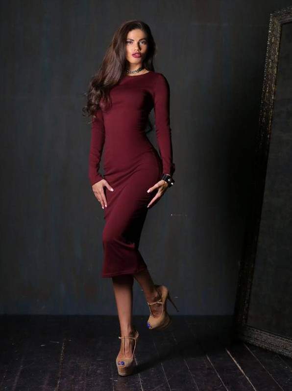 Красноватое обтягивающее платье