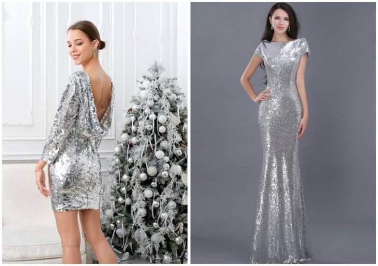 Серебристое платье на новый год