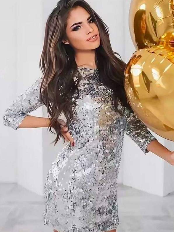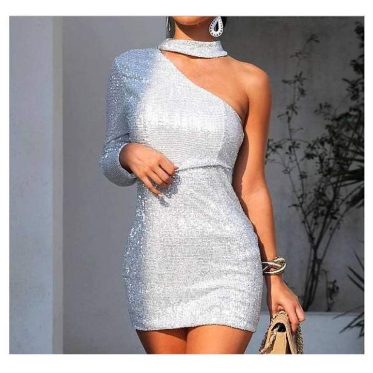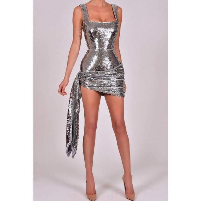 Silver Sequin Mini Dress