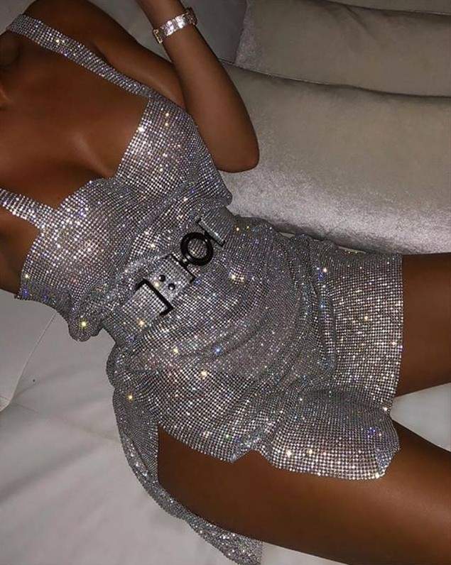 Серебряное платье с камнями