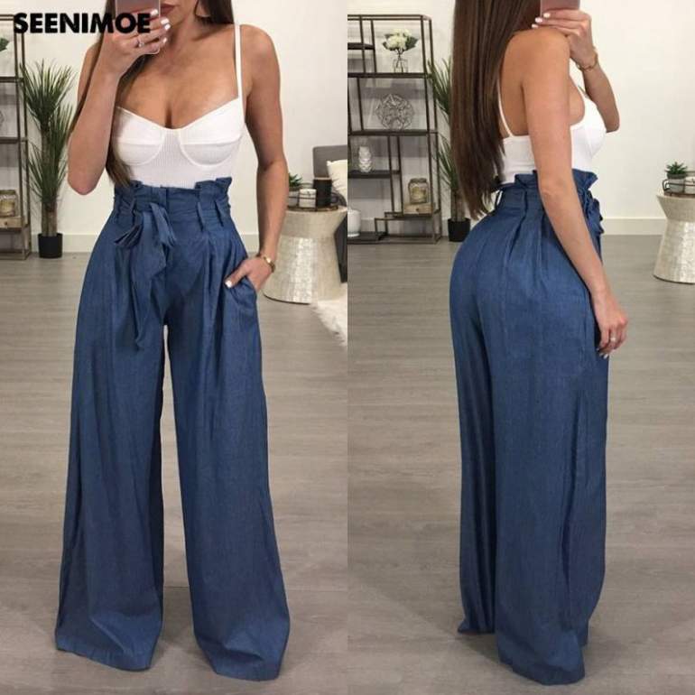 Широкие штаны палаццо с высочайшей талией