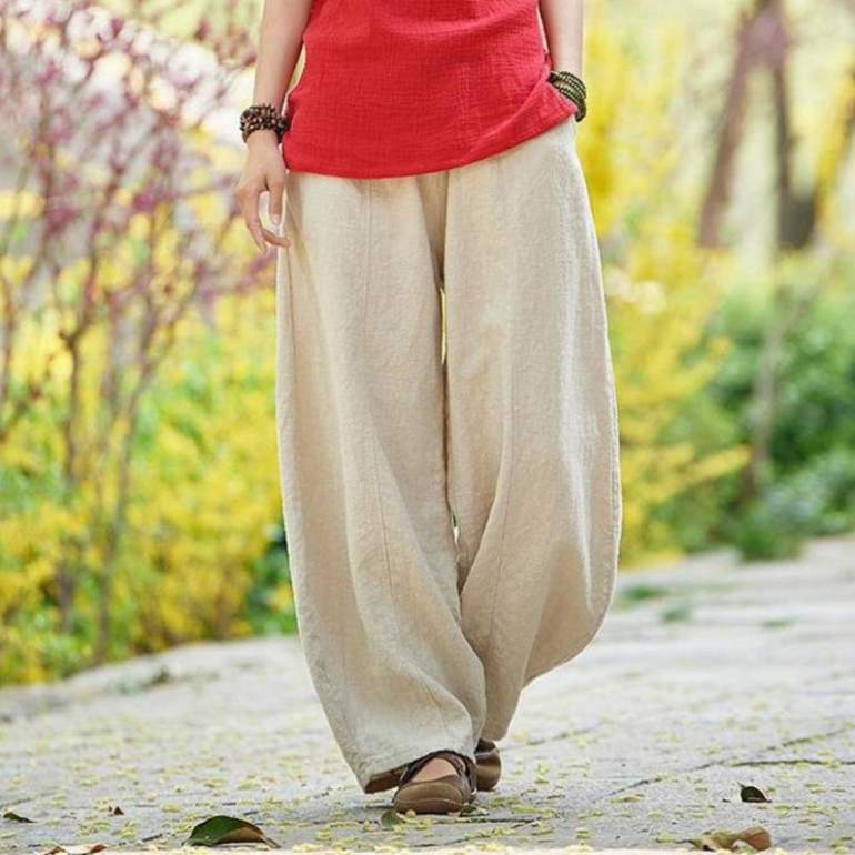 Широкие штаны из льна дамские