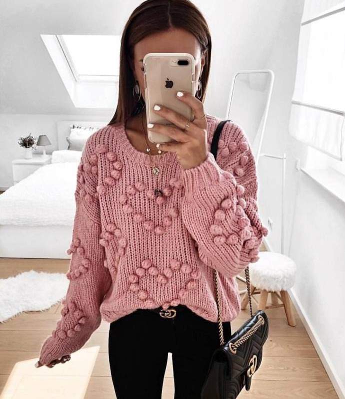 Вязаный свитер шишечками