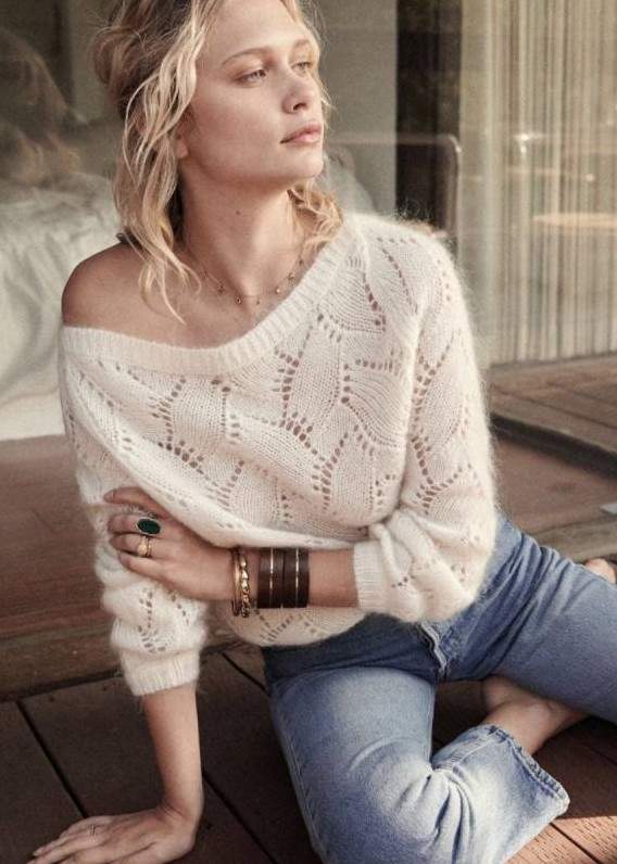 Свитера с открытыми плечами большой вязки