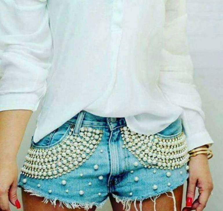 Расшить джинсовые шорты