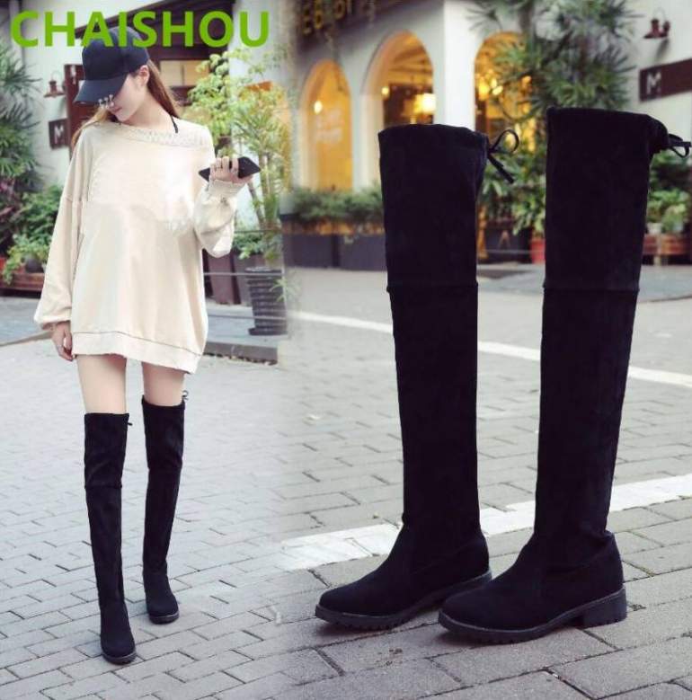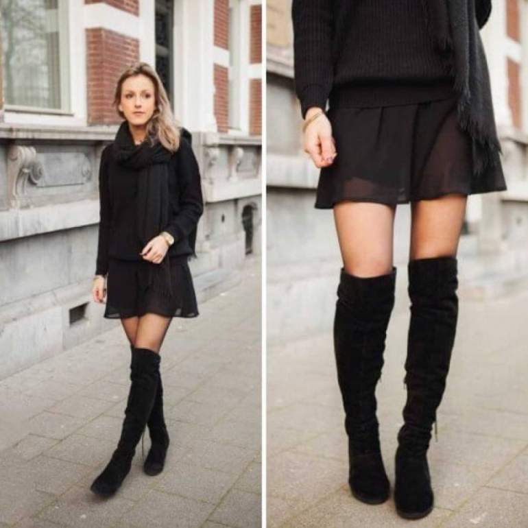 Образы с ботфортами без каблука