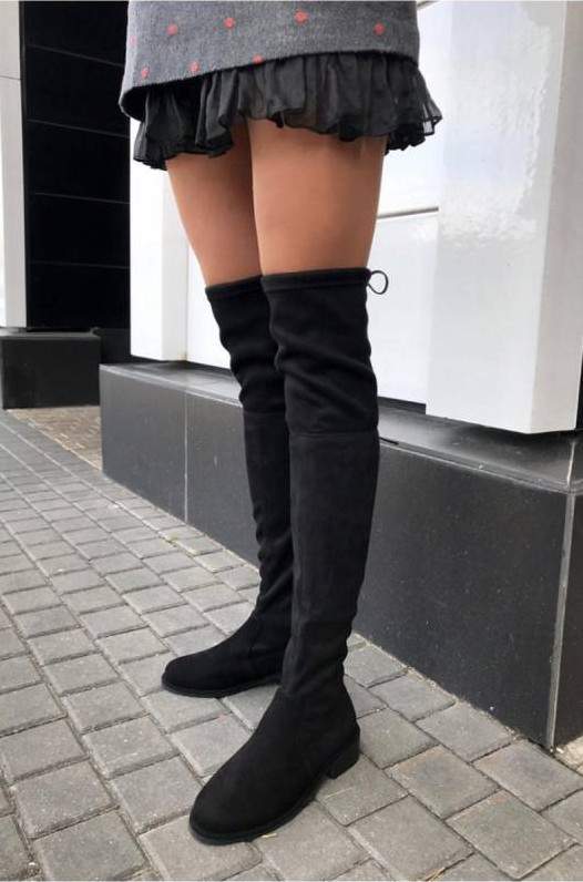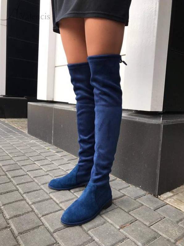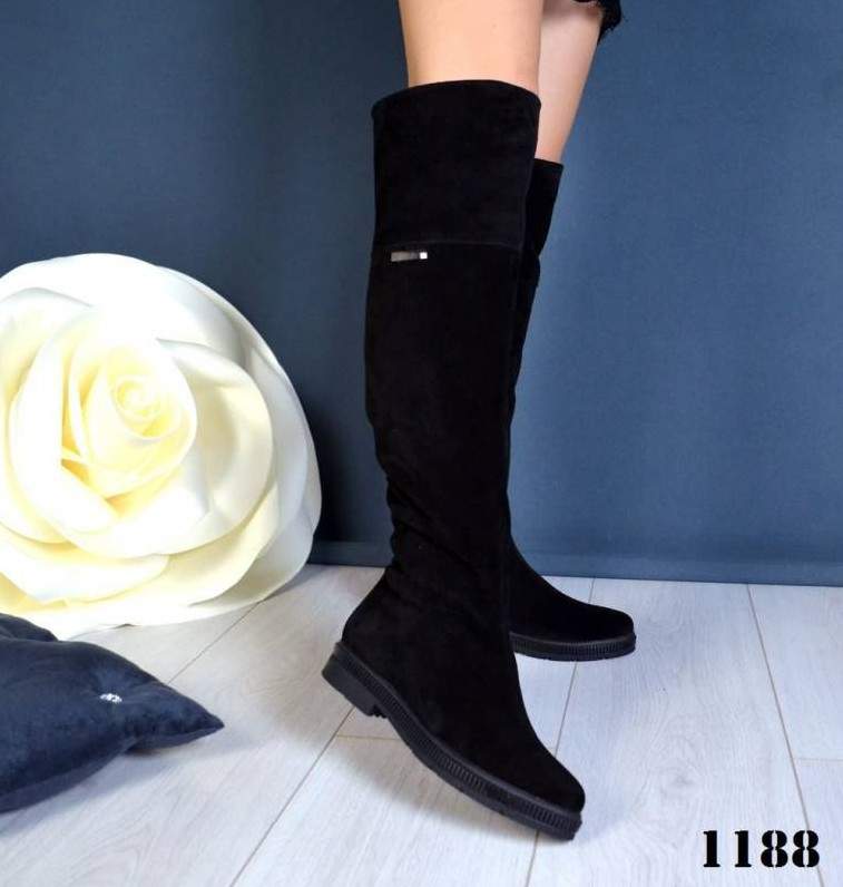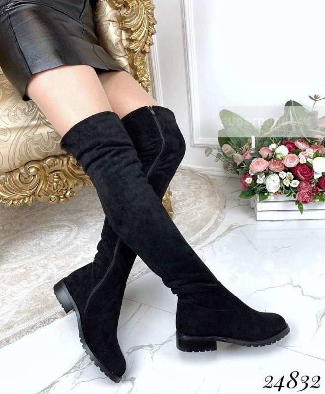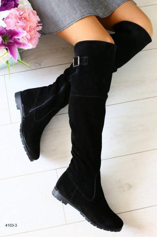 Сапоги ботфорты замшевые без каблука зима