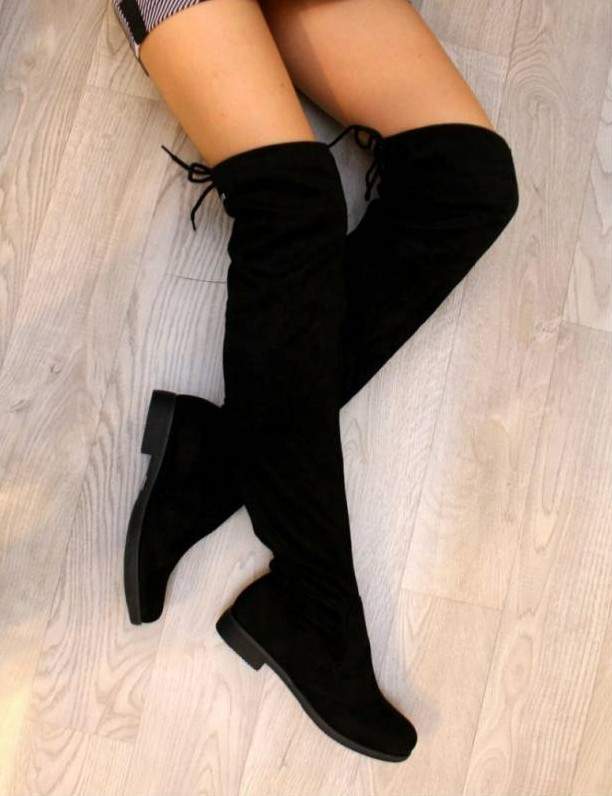 Темные ботфорты без каблука