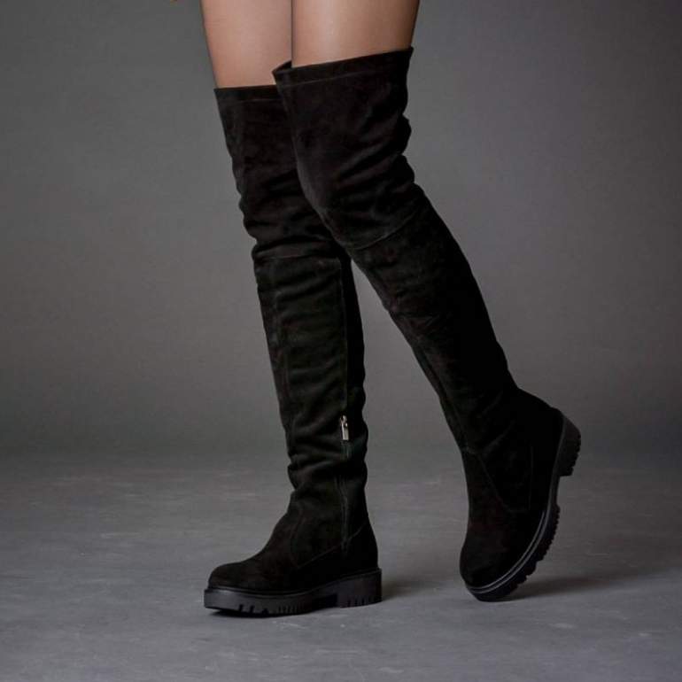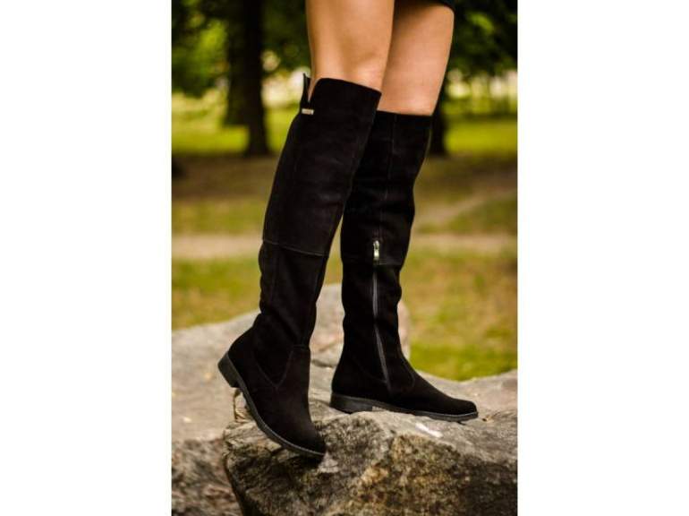 Замшевые ботфорты без каблука