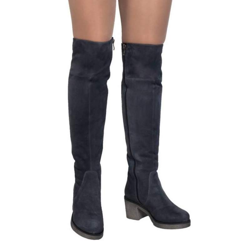Сапоги замшевые темные зима ботфорты
