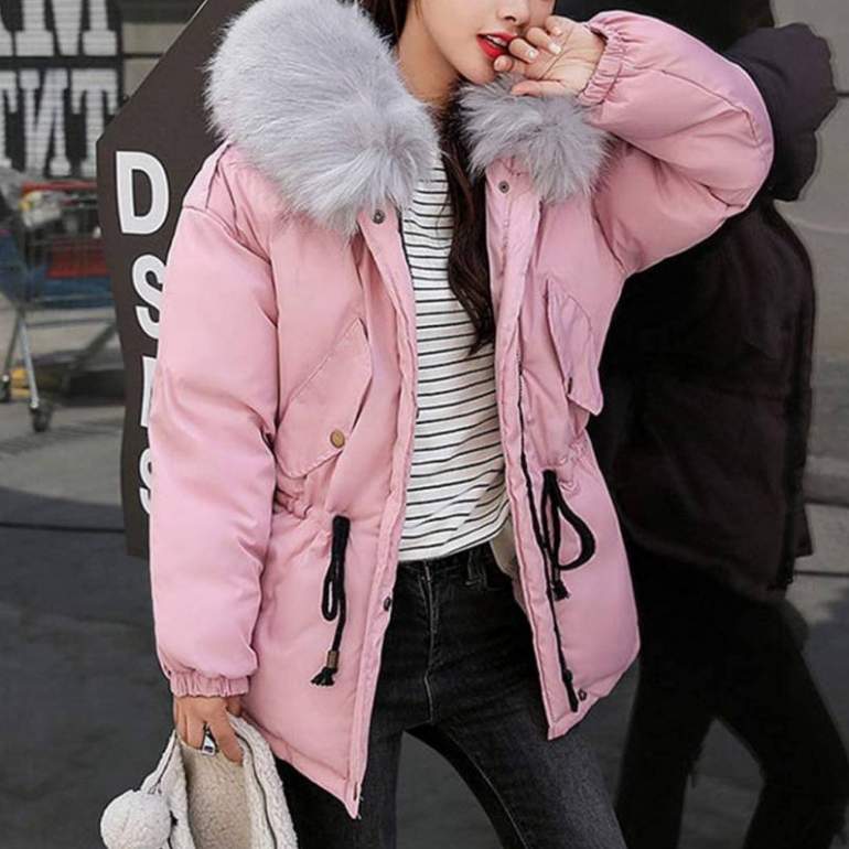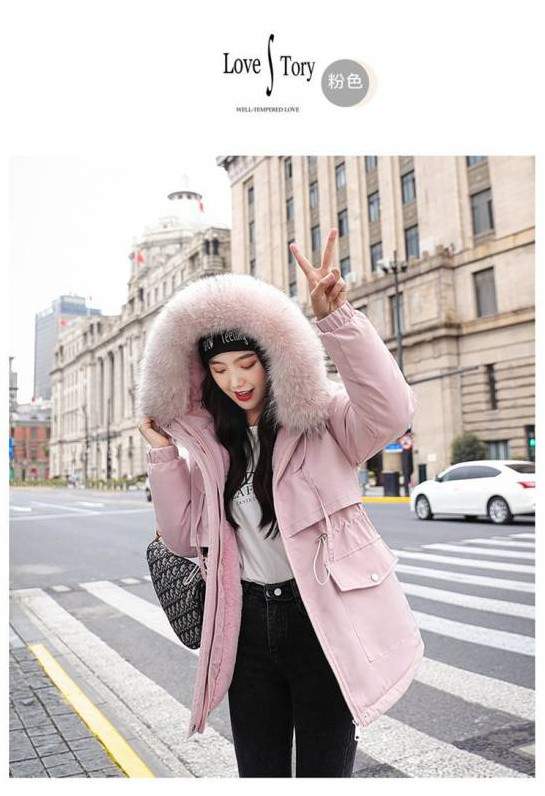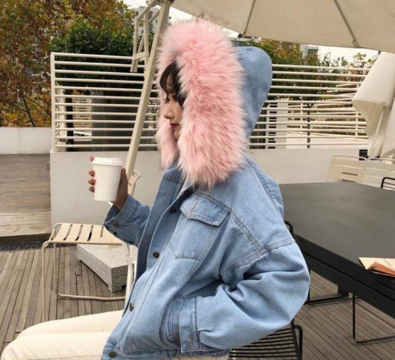 Luzuzi 2022 big Faux fur Collar Denim Jacket women Winter Hooded warm Jean Jacket student Basic short Parkas female Bomber Coat