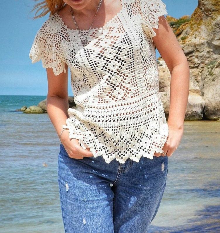 Футболка крючком для красивых женщин