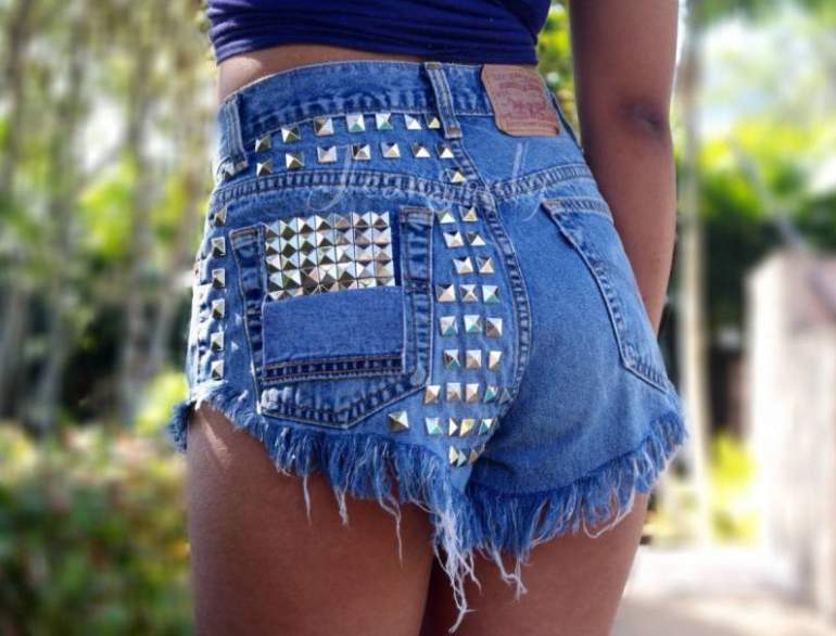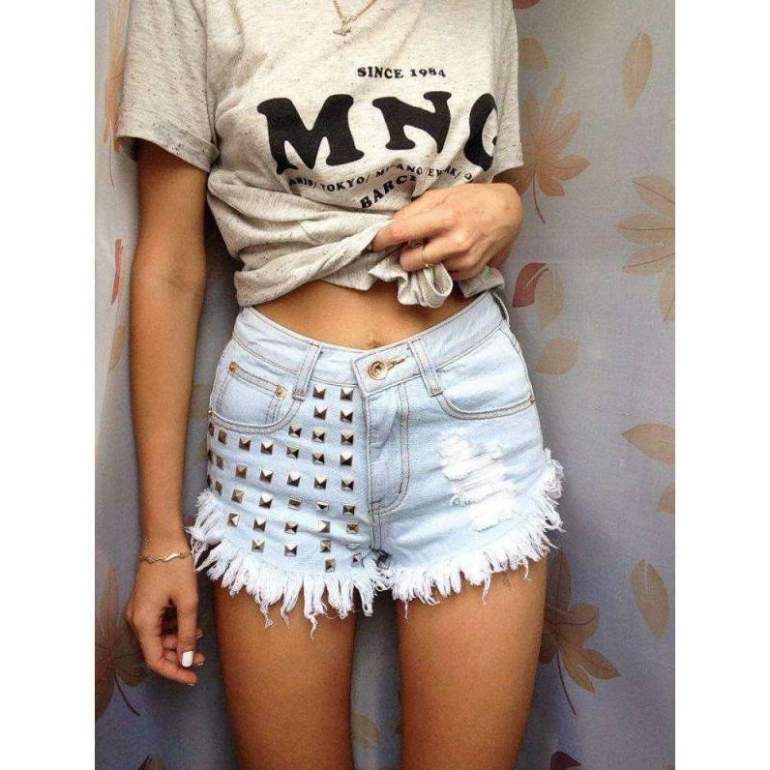 Джинсовые шорты с металлическими клепками
