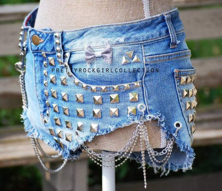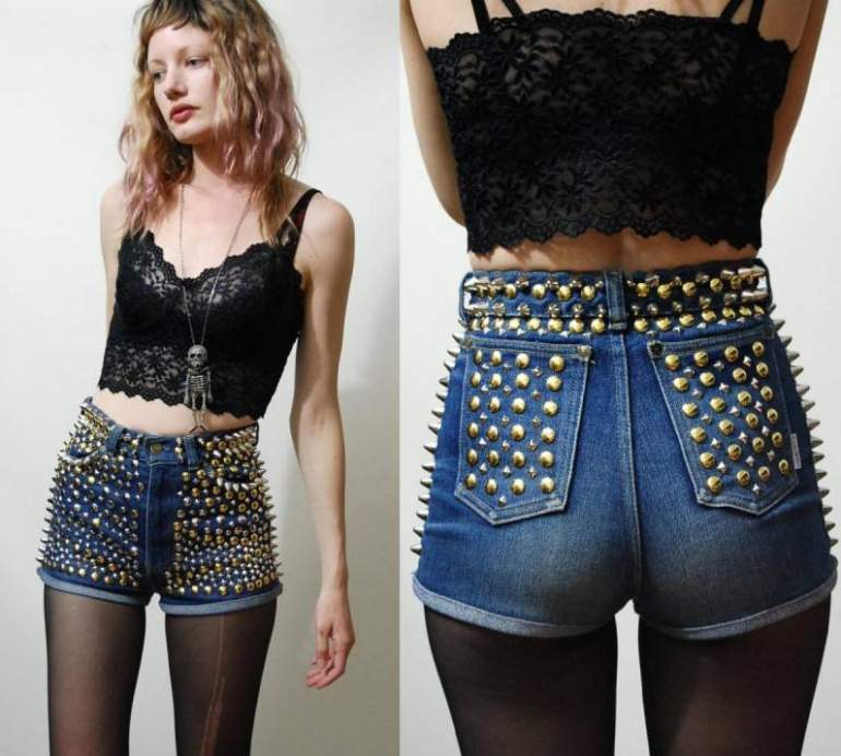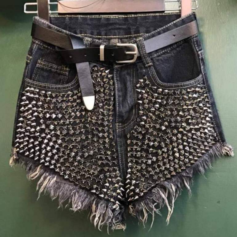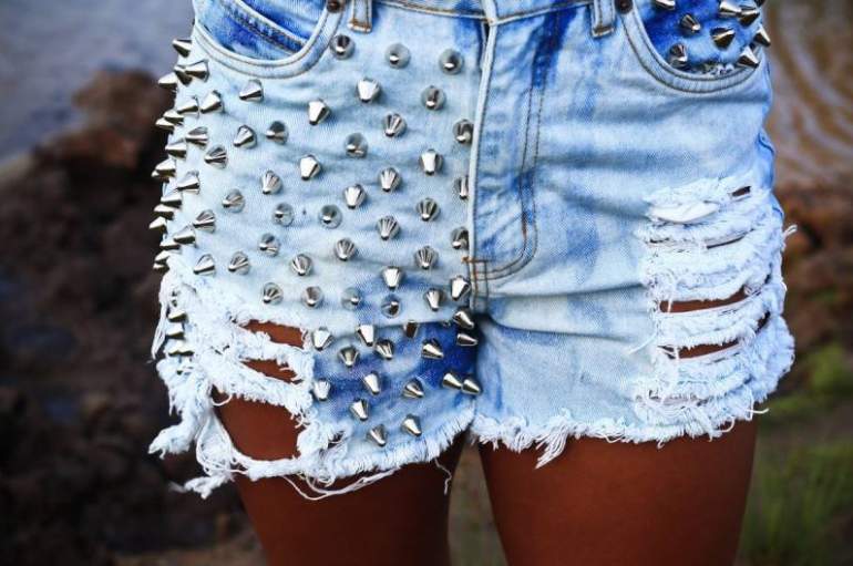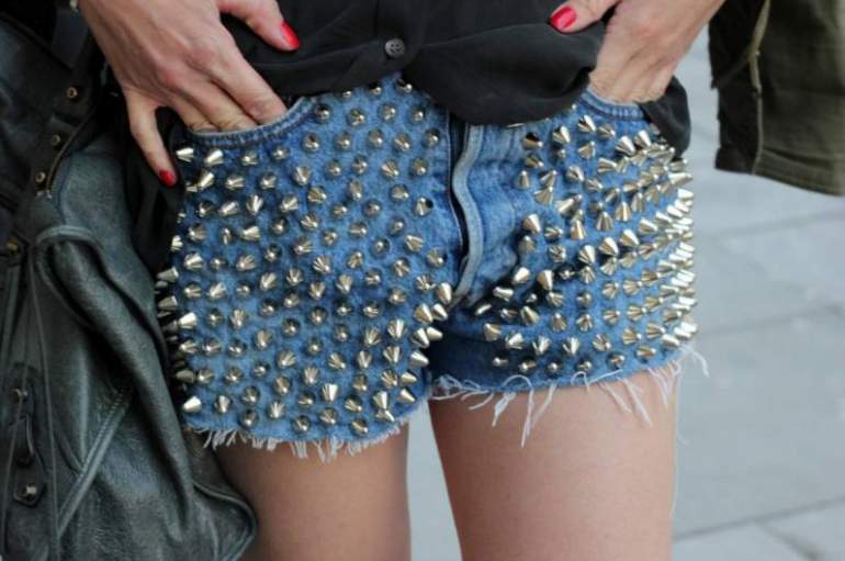Джинсовые шорты с шипами