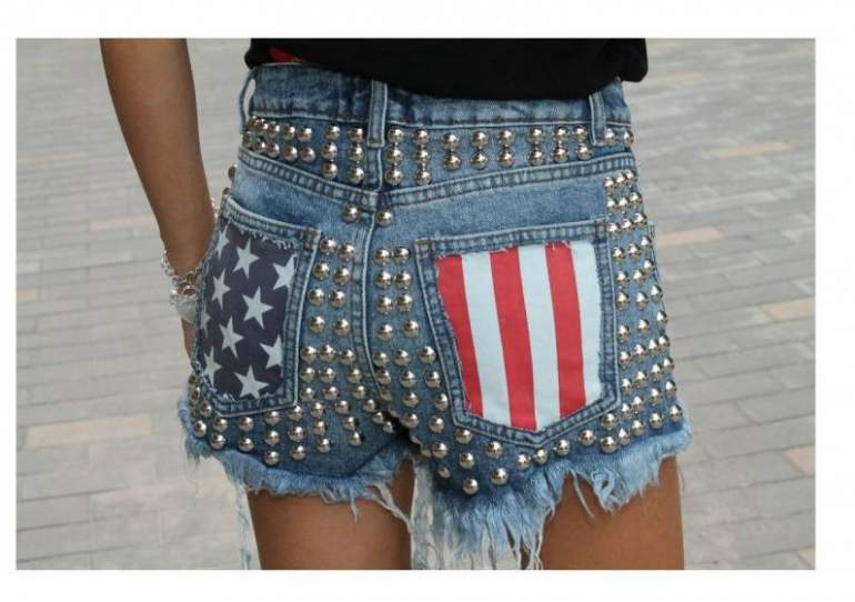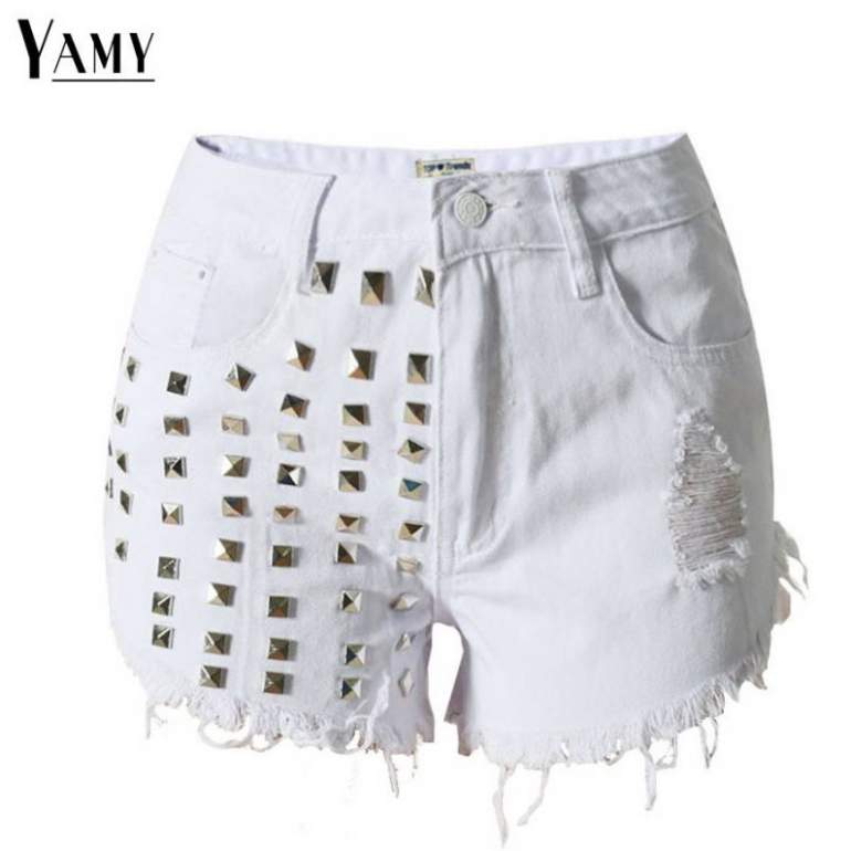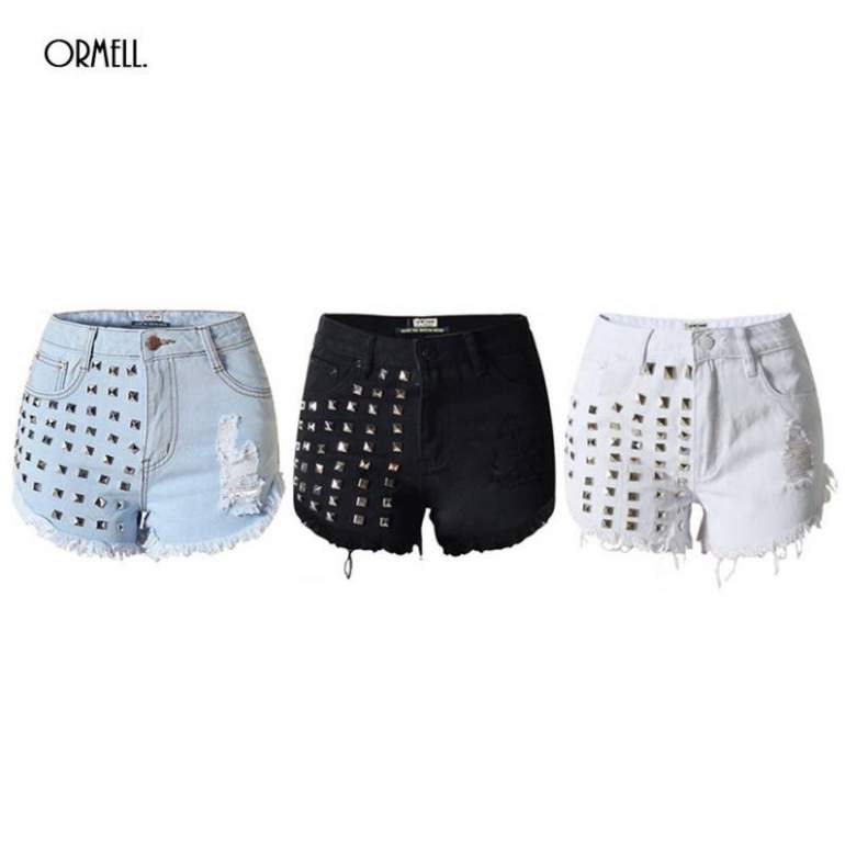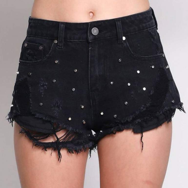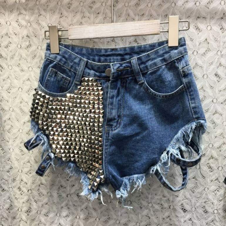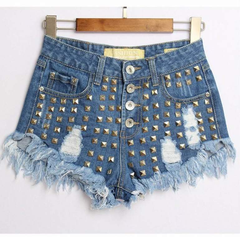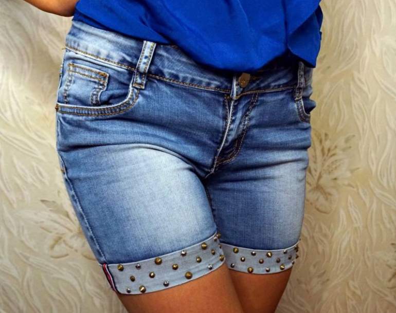 Джинсовые шорты дамские с заклепками