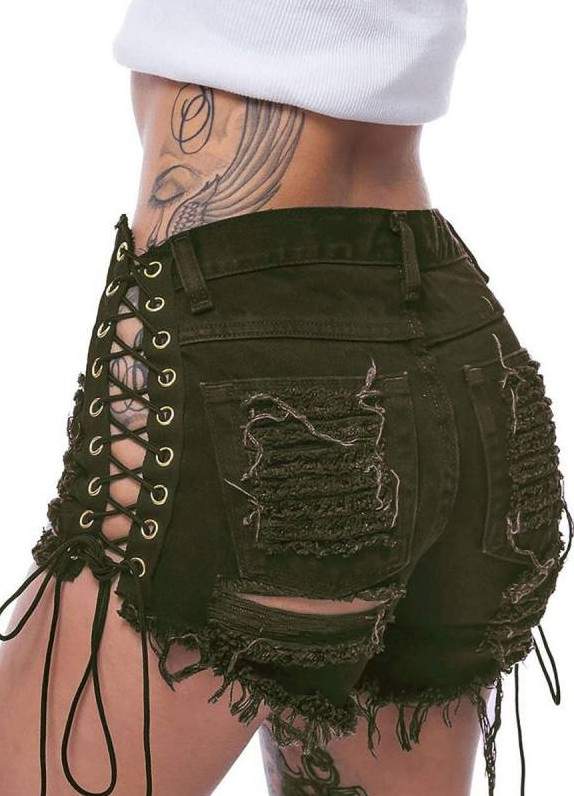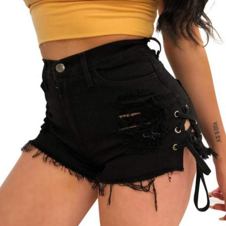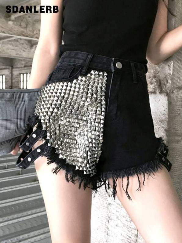Шорты чёрные дамские джинсовые в стиле панк