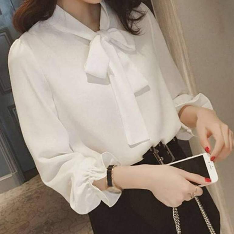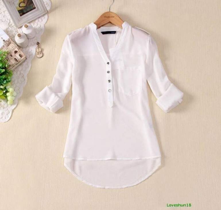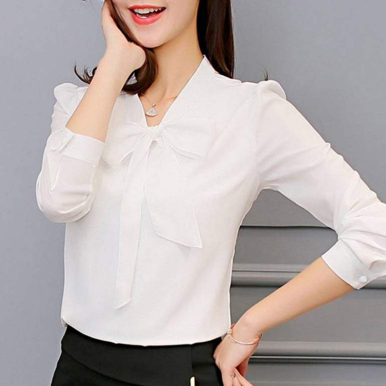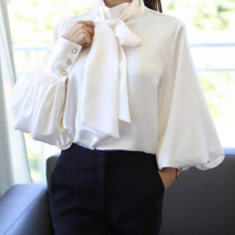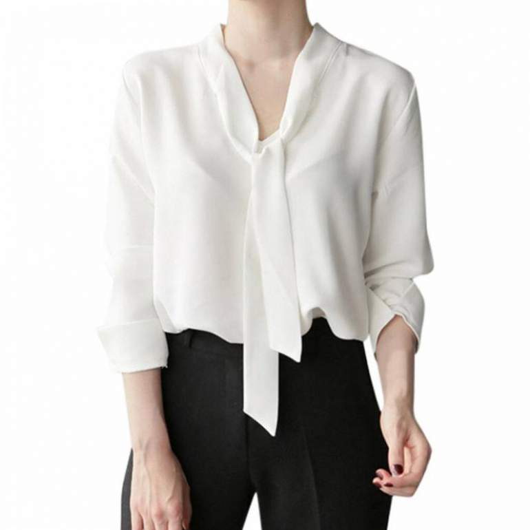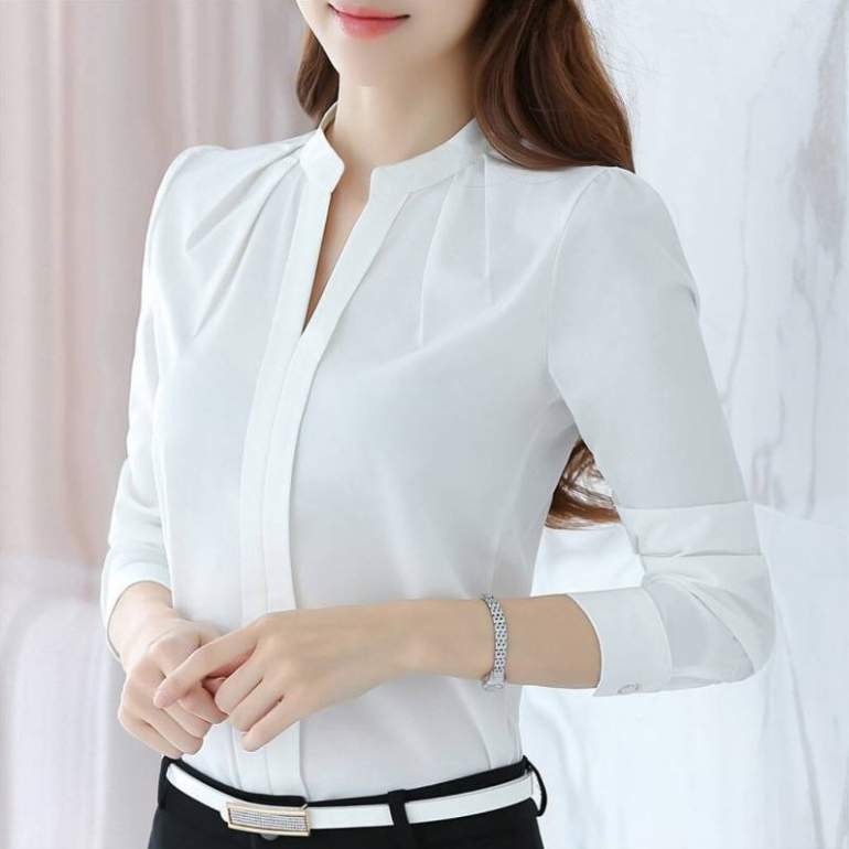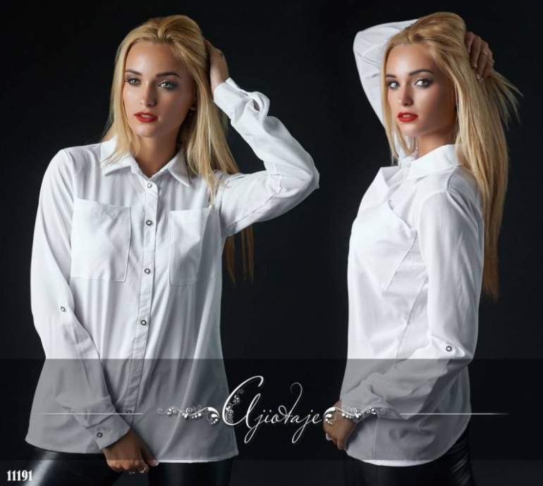 Белоснежная блузка женская с длинноватым рукавом деловая