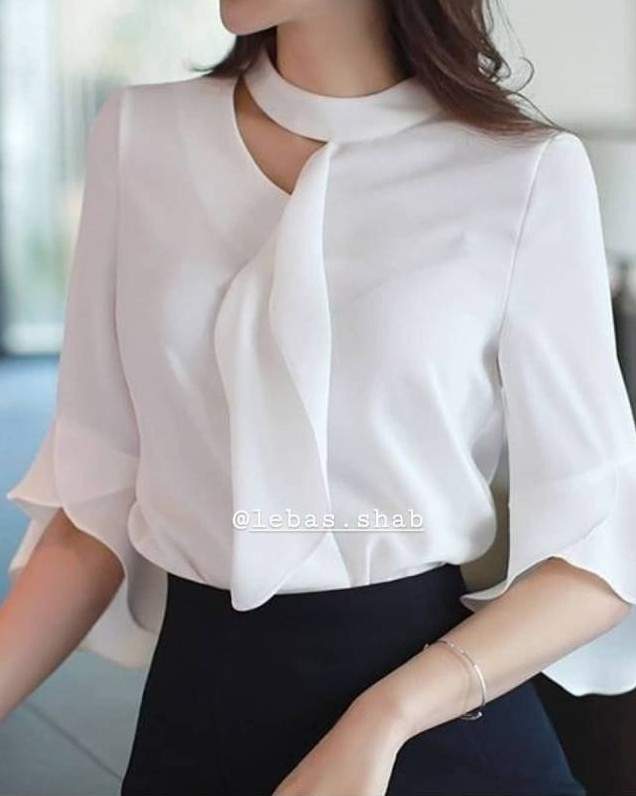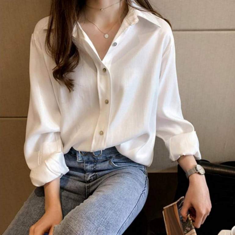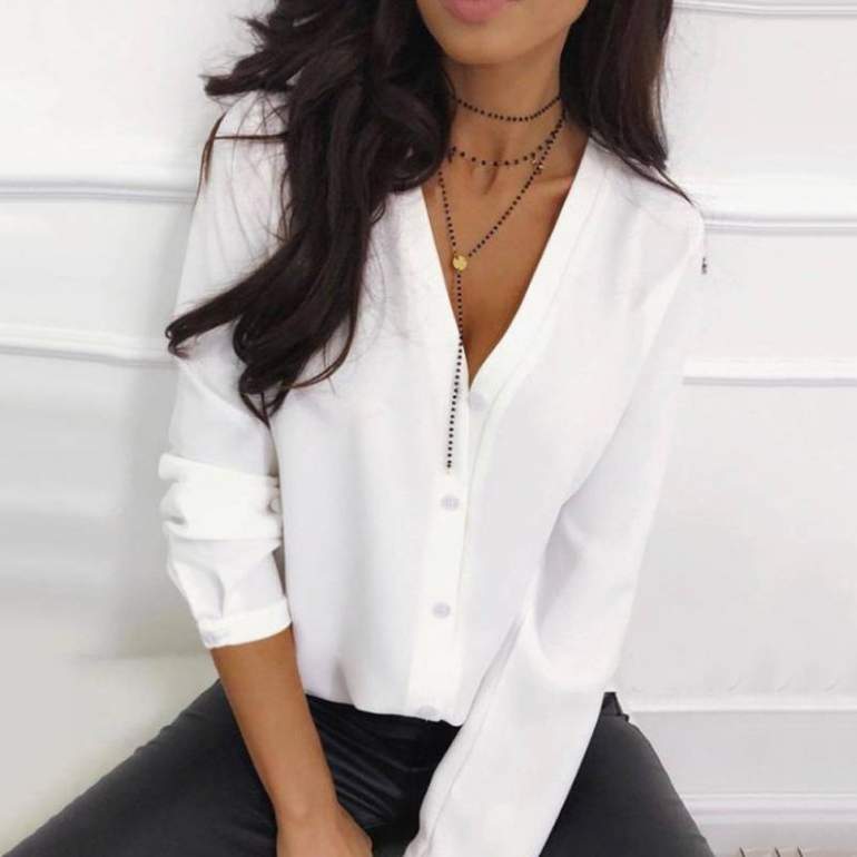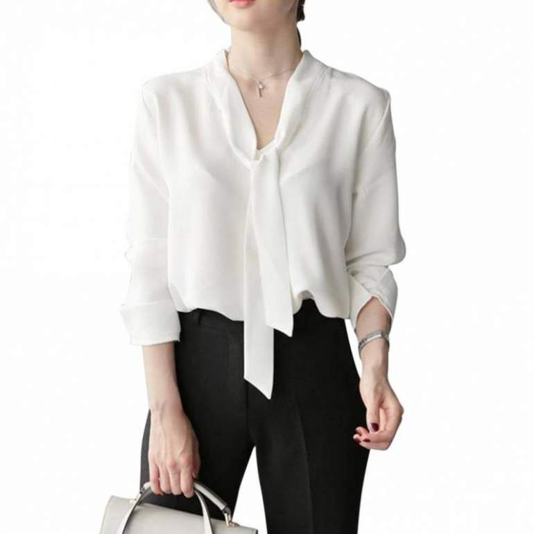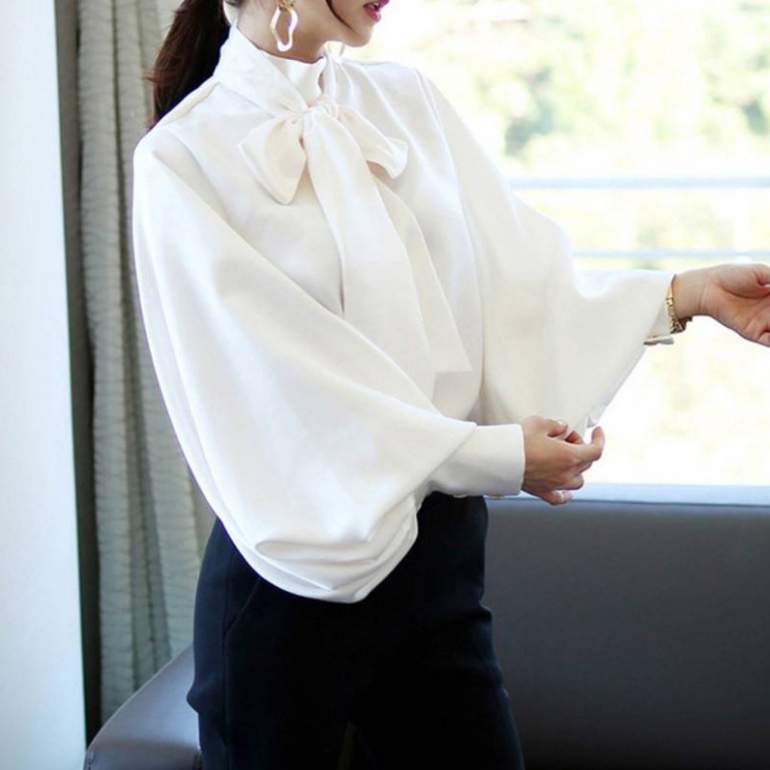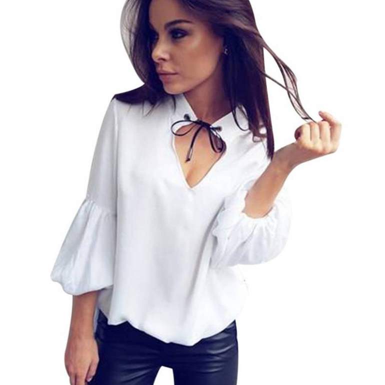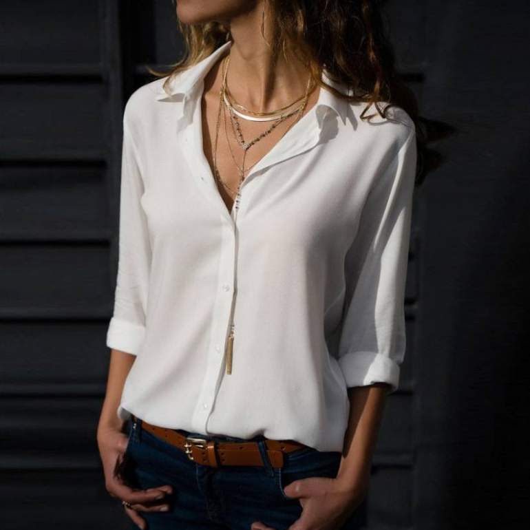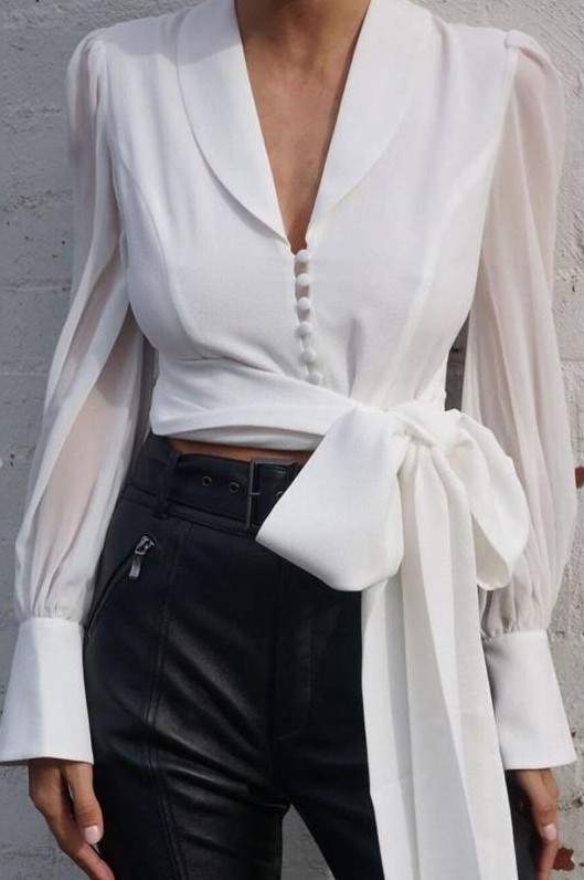 Белоснежная блузка женская с длинноватым рукавом деловая