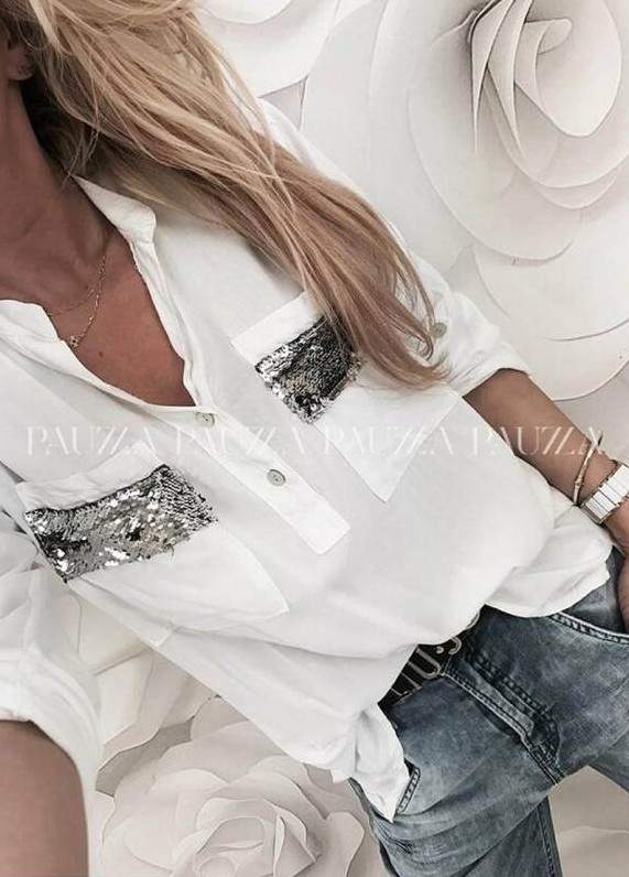 Белоснежная шёлковая кофта с длинноватым рукавом