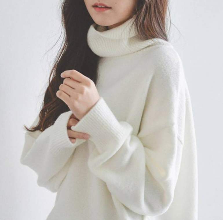 Белоснежный свитер с огромным гортанью