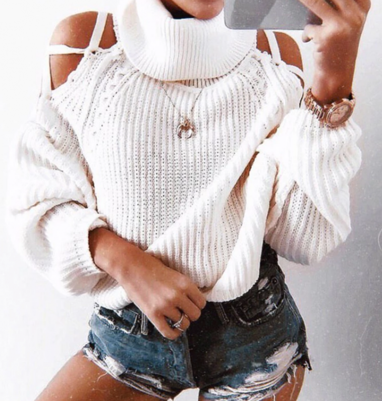 Белоснежный свитер с открытыми плечами