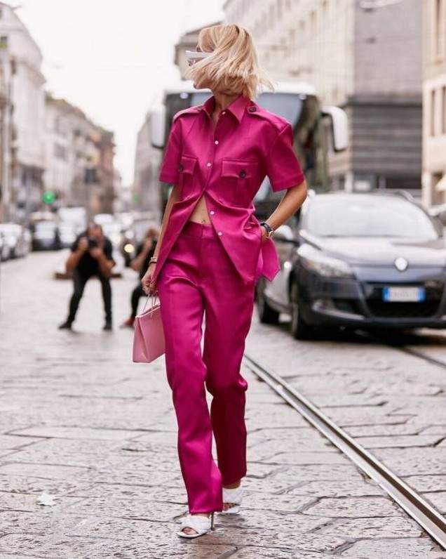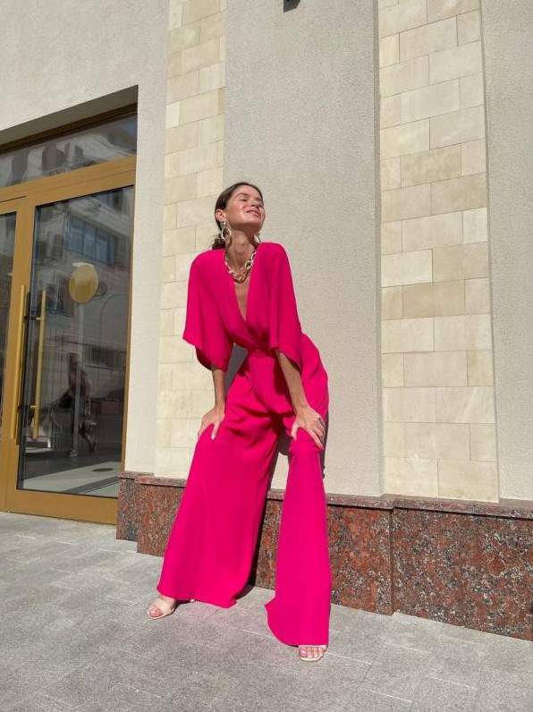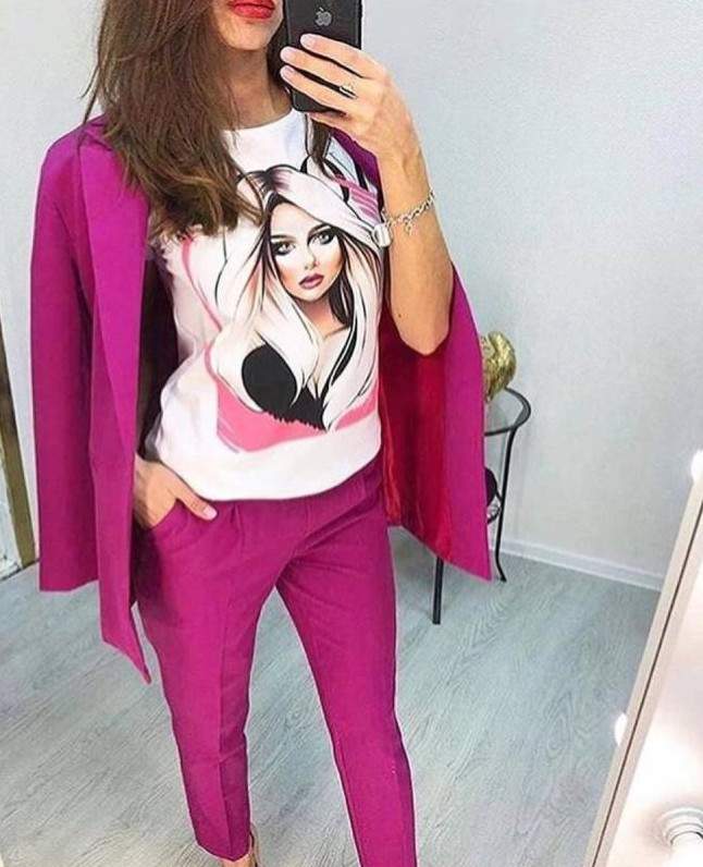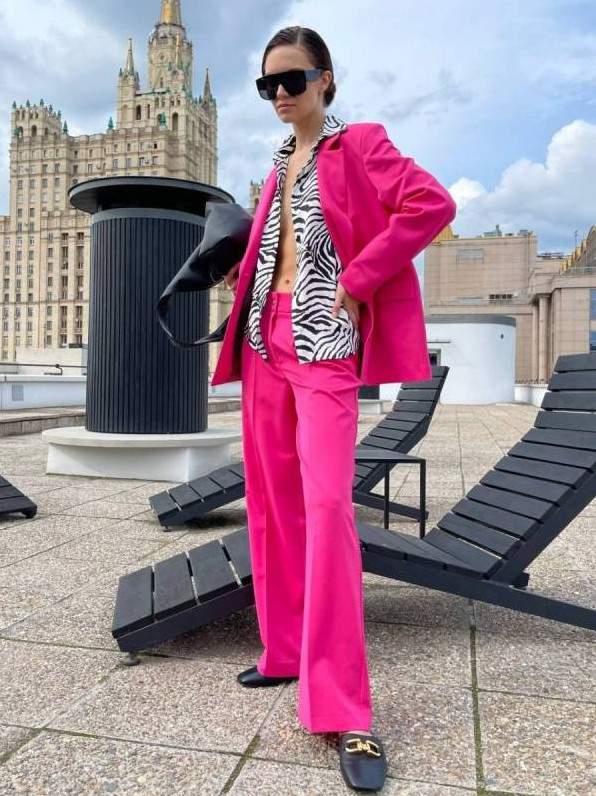 Брючный костюмчик фуксия стрит стайл